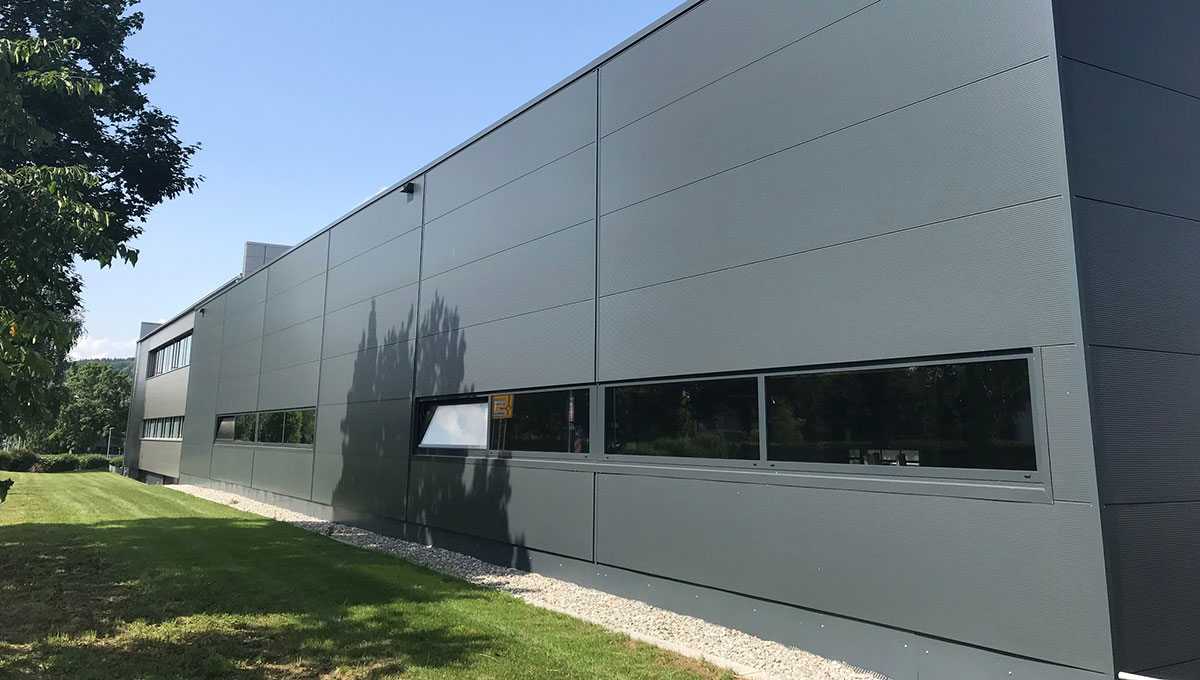 Anbau einer Produktionshalle und Aufstockung 2. Obergeschoss an bestehenden Verwaltungsbau in Markdorf.
